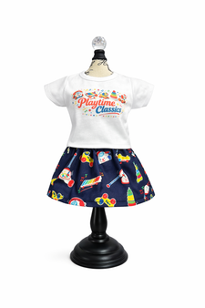 Our designs are crafted in small batches using soft, doll-friendly fabrics and quality construction, making them perfect for mixing, matching, and long-lasting play. From statement graphic tees to twirl-ready skirts and coordinated sets, each item is made with care and personality.