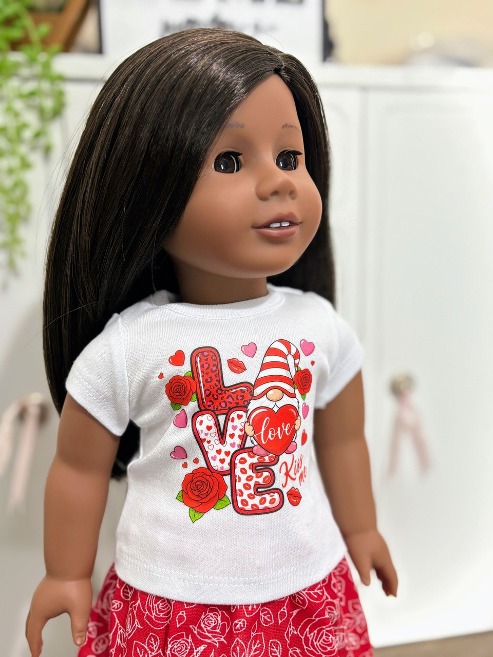 Every piece in our Valentine’s Collection is handmade in small batches using soft, doll-friendly fabrics and quality construction. Our graphic tees are professionally printed and pressed for a smooth finish, while skirts are designed with comfortable elastic waists for easy on and off.