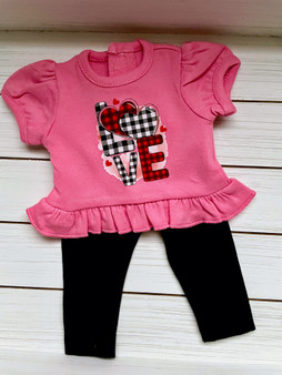 Quick view Valentine Love checker hearts Graphic shirt FITS" 18 inch dolls SHIRT: Color: Pink Closure: Velcro Fabric: Cotton PANTS: Fabric: Cotton Wai… Now: $21.99 Add to Cart